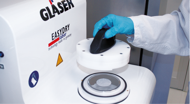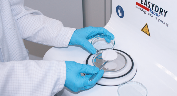 Device for drying analysis membranes for the determination of gravimetry of Technical Cleanliness of functionally relevant components in accordance with VDA 19.1 and ISO 16232. With significant time and place saving.
